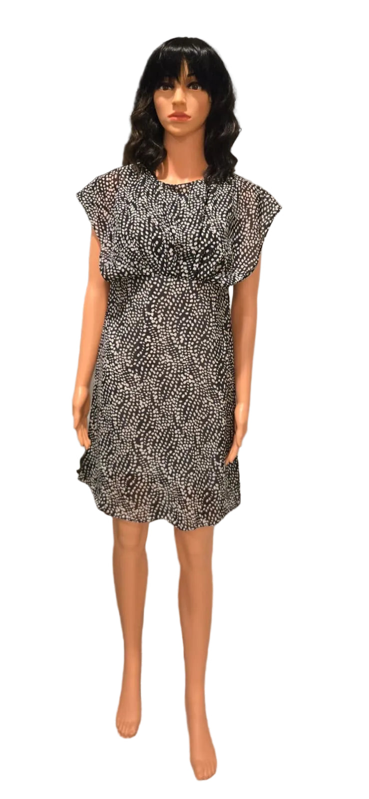 A sophisticated black georgette dress with lining, designed for both office and casual wear. Versatile year-round styling with effortless elegance. Machine wash in cold water.